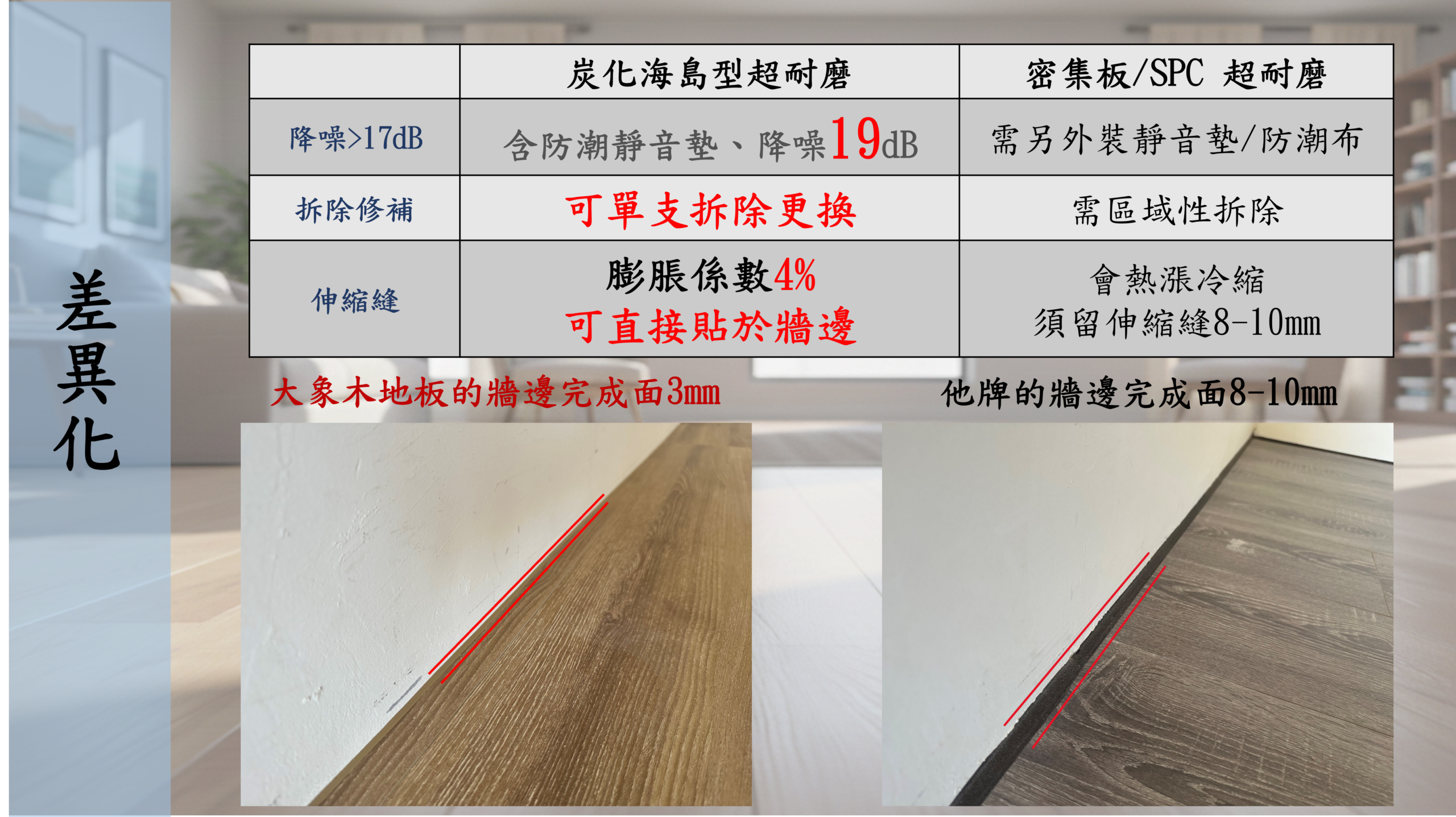 F1多層實木落葉松基材 無毒、無粉蛀蟲、防霉、防潮、降噪19分貝 可釘、可黏、可造型、不留伸縮縫 材料費:4000 施工方式: 直鋪 +1200 平鋪 +2200 架高 +3600 ※施工不需另外加購分隔條等等附加用品 ※實際報價依現場狀況為主